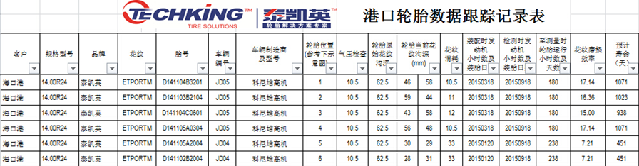 2015年9月,泰凯英工程师跨越大半个中国,来到祖国最南端,走访了海口港集装箱码头,实地考查了新一代的港口流机设备专用轮胎的使用表现,经过专业的测量和科学的对比,证实泰凯英ETPORTM系列港口流机设备专用胎取得了优异的表现。